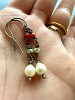 Beautiful pearls paired with faceted antique coral and Australian boulder opals.