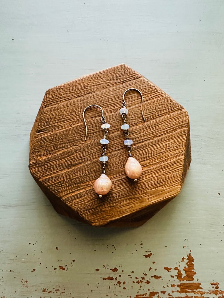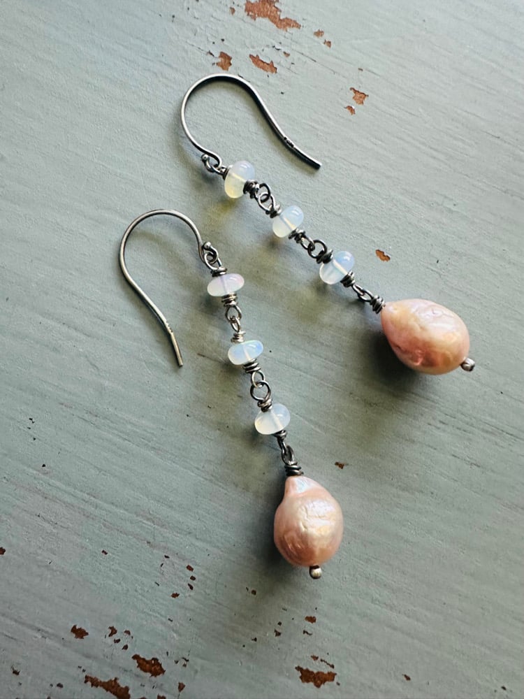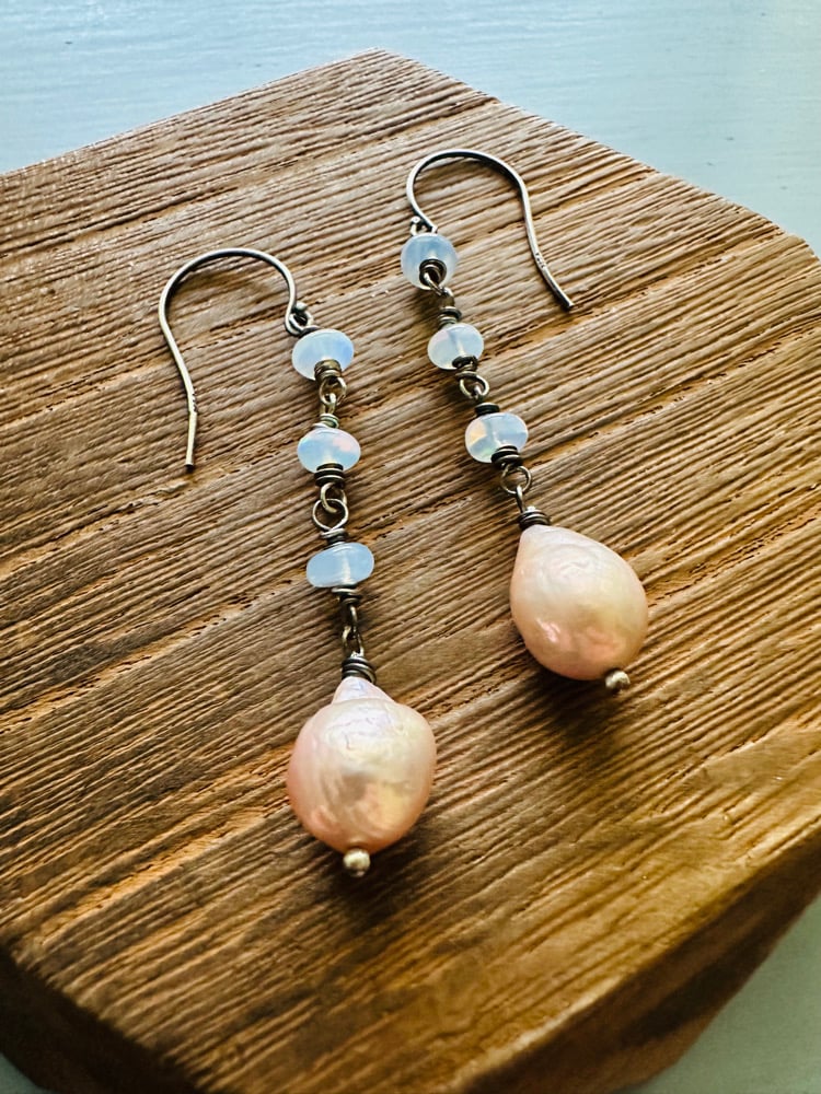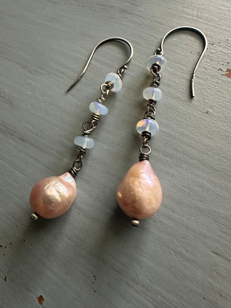 baroque pearl and opal earrings