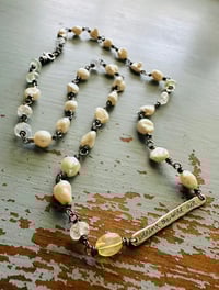 Made by hand in my Nashville studio, the chain is composed of creamy off white baroque pearls that have been individually wrapped with blackened sterling silver wire.