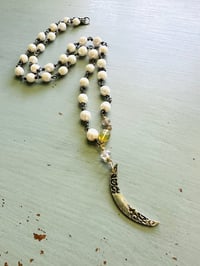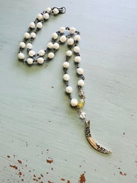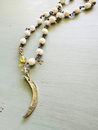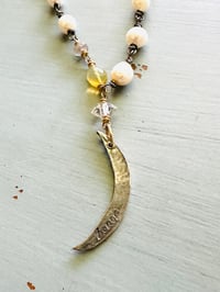The sterling silver moon pendant is my own creation. it has my signature Tudor roses on the front. On the back, I wrote the word honor.