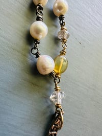 baroque pearl necklace with sapphire herkimer diamond and opal accents