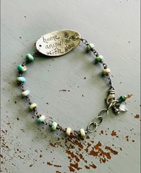 beaded turquoise and sterling silver medallion bracelet . home is with you
