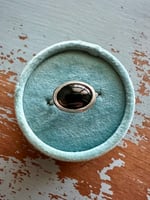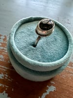 The tourmaline is like a delicious jelly bean- dark dark olive green that looks almost black when not in direct light.