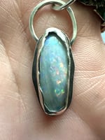 Opal pendant is 1.25 inches long, including the ring.