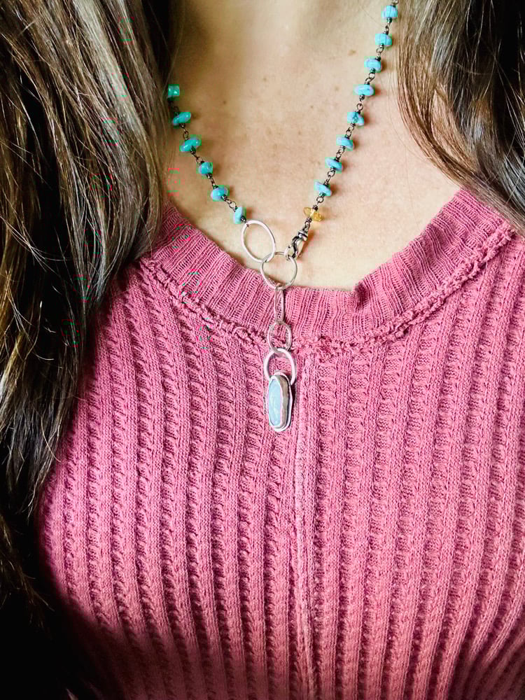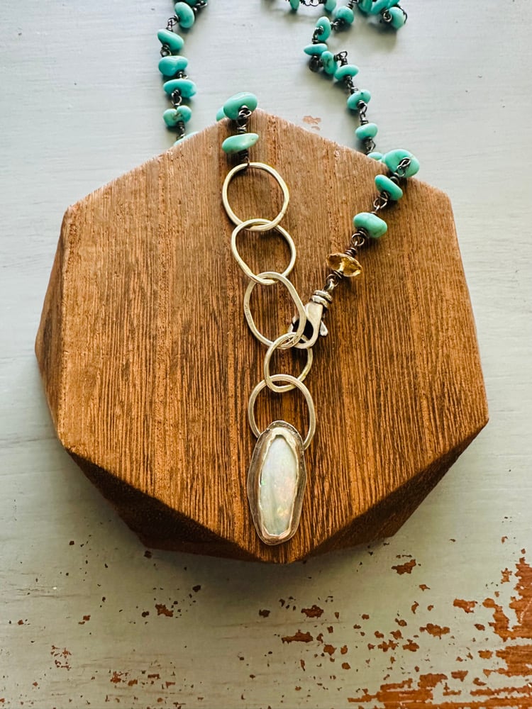 gorgeous turquoise nugget necklace with opal pendant