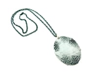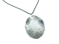 The oval pendant measures just over 1 3/4 inch tall by 1 3/8 inch at it's widest.