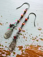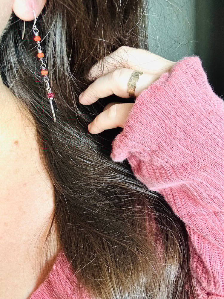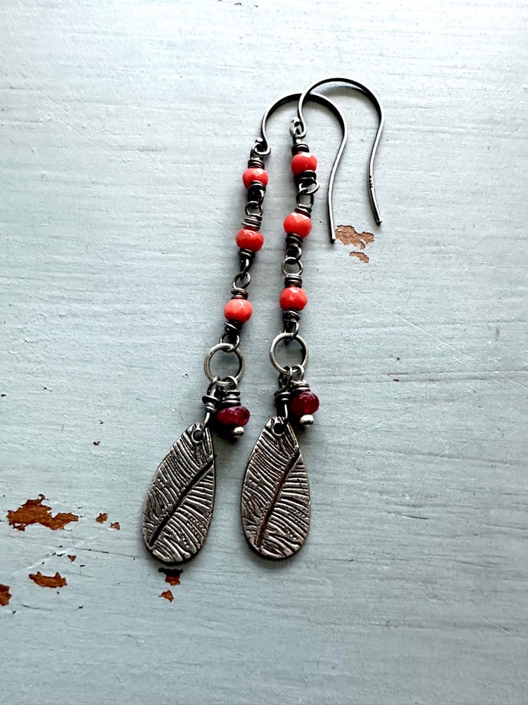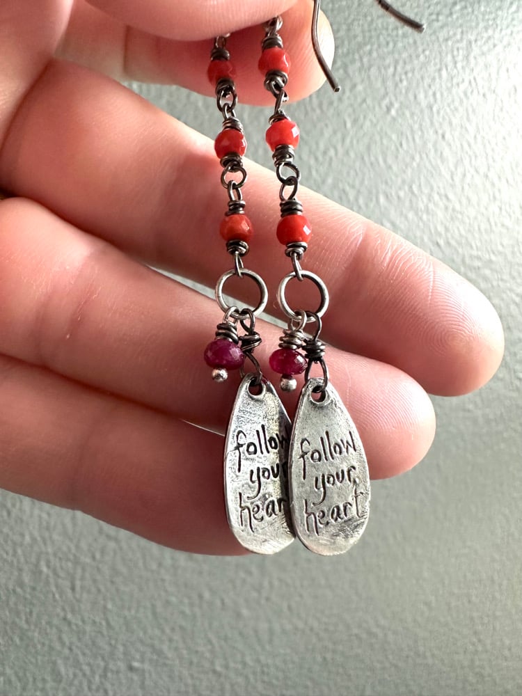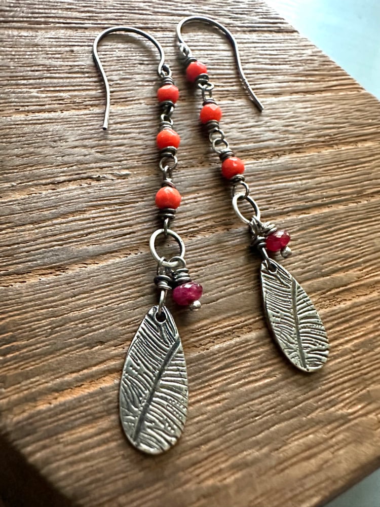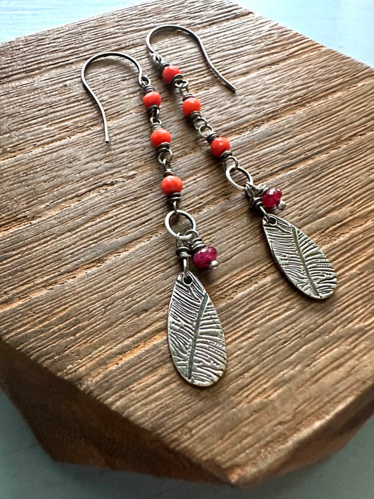 Gorgeous pieces of undyed Italian coral stacked on sterling silver wire links, paired with natural rubies from the Longido Mine- so pretty.