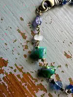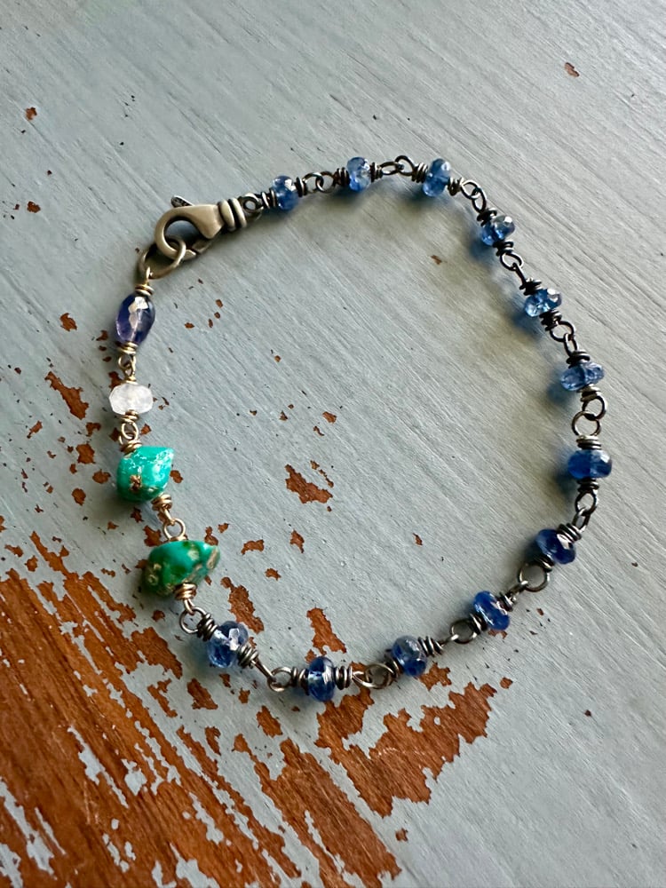 I added a faceted oval of AA iolite, a AA rainbow moonstone, and two nuggets of Fox Mine turquoise.