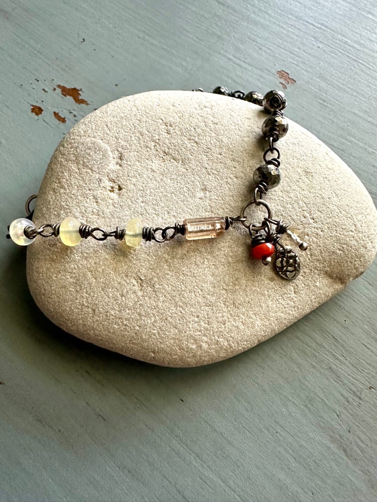 Handcrafted in Tennessee, a one of a kind wire wrapped  gemstone charm bracelet.