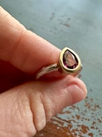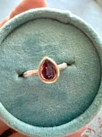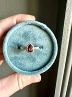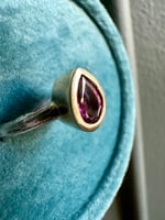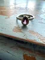 Your ring features a 6x4mm faceted pear shaped vibrant pink spinel.