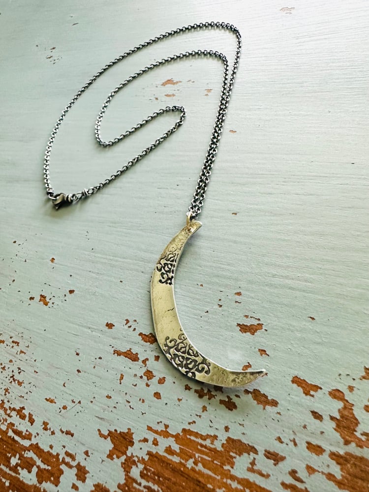 A beautiful sterling silver moon necklace, handcrafted in my Tennessee studio.