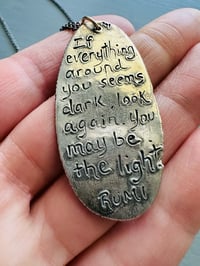 sterling silver necklace with hand engraved Rumi quote by peaces of indigo