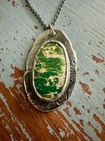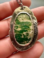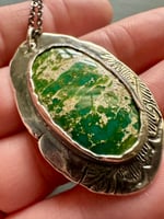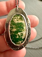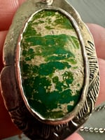 The back of the pendant is thick sterling silver, with an engraved feather to complement the stone.