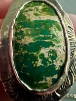 I set a hand cut cabochon of gorgeous natural Stone Mountain turquoise in a sterling silver bezel setting.