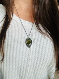 The pendant hangs from an oval sterling silver ring.